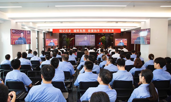 觀看現(xiàn)場,黨員干部員工全神貫注,跟隨直播畫面感受大會盛況。習近平總書記發(fā)表重要講話,人民軍隊光榮接受習近平總書記檢閱,空中梯隊戰(zhàn)機起飛,閱兵分列式正式開始。45個方(梯)隊依次通過天安門廣場,從空中護旗梯隊用多型直升機編隊傳遞“正義必勝、和平必勝、人民必勝”的真理,到徒步方隊兼顧“抗戰(zhàn)老部隊”榮光與“軍事力量新布局”朝氣;從戰(zhàn)旗方隊擎起功勛旗幟傳承抗戰(zhàn)精神,到裝備方隊按實戰(zhàn)化聯(lián)合編組展示最新國產(chǎn)主戰(zhàn)裝備;再到空中梯隊多機型編隊展現(xiàn)空中作戰(zhàn)實力,充分展示了中國人民解放軍改革重塑后的軍兵種結(jié)構(gòu)嶄新布局和武器裝備體系建設(shè)的最新成果。人民英雄紀念碑前,千余名官兵組成的新中國閱兵史上規(guī)模最大的聯(lián)合軍樂團,演奏抗戰(zhàn)經(jīng)典曲目,14個排面象征十四年抗戰(zhàn),80名禮號手寓意勝利80周年?;顒幼詈螅?萬只彩色氣球與8萬羽和平鴿同時騰空,致敬和平。