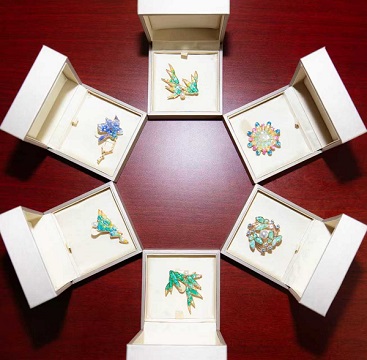 實操體驗環(huán)節(jié),現(xiàn)場熱鬧非凡,指導老師分步示范螺鈿鑲嵌的制作步驟,從研磨貝殼,到封層固化,其中的每一個環(huán)節(jié)都至關重要。全員隨后迫不及待拿起材料和工具進行動手實踐,過程中互相交流鑲嵌技巧、分享創(chuàng)作靈感。隨著胸針雛形的慢慢顯現(xiàn),原本單調的金屬底胎,經過大家精心的色彩搭配和螺片設計,逐漸變成了一個個獨具匠心的定制胸針。