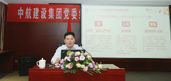 隨后,陳先瑞書(shū)記的黨課將此次活動(dòng)推向了高潮。陳書(shū)記的授課從“中國(guó)特色社會(huì)主義進(jìn)入新時(shí)代”“努力開(kāi)創(chuàng)中航建設(shè)發(fā)展新格局”兩個(gè)層面入手,以新時(shí)代產(chǎn)生新思想,新思想引領(lǐng)跨入新征程為切入點(diǎn),生動(dòng)講述了十八大以來(lái)中國(guó)取得的輝煌成就,展示了中華民族從站起來(lái)、富起來(lái)到強(qiáng)起來(lái)的偉大飛躍;向全體中航建設(shè)人吹響了融入時(shí)代發(fā)展大潮、共建企業(yè)美好未來(lái)的集結(jié)號(hào)。陳書(shū)記號(hào)召大家必須順應(yīng)時(shí)代的發(fā)展,做到學(xué)習(xí)新思想,忠誠(chéng)勇當(dāng)擔(dān),以永不懈怠的精神狀態(tài)和一往無(wú)前的奮斗姿態(tài),施展新作為,闊步新征程。